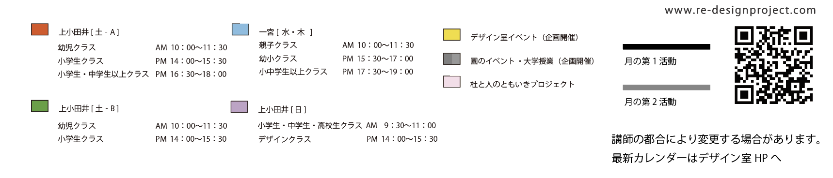 *カレンダーは講師の都合によりその都度変更、更新が御座います。